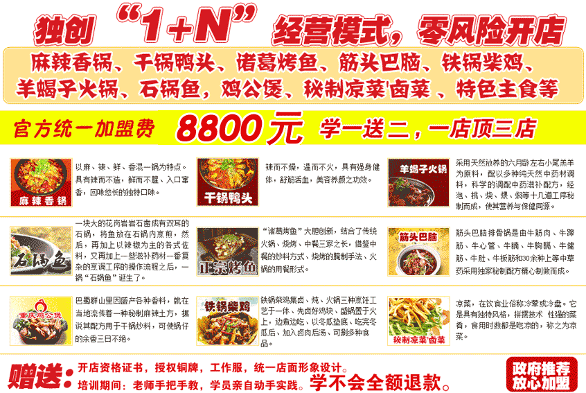 學(xué)習(xí)重慶雞公煲對投資者來說,具有投資小、風(fēng)險低、易管理、回報高、利潤空間大等許多優(yōu)點,而且經(jīng)營成功率高是最直接的關(guān)鍵之一。