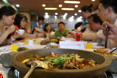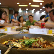 石鍋魚的選料:當一份香、鮮、辣的石鍋魚吃凈之后,在來上幾分菜,涮著吃,味道及鮮美,有可以爽口,清淡易下味覺,在涮料中,最好吃有特色的涮料要當屬手扯面,手扯面現(xiàn)場料理,在我們的面前親自扯面,然后放到石鍋中,慢慢的煮,魚湯,加上蔬菜,加上手扯面,那感覺絕對是你想象不出來的。 石鍋魚的主料選用草魚,選料很有講究。石鍋魚的魚片刀法要求非常高,刀工好的師傅,切出來的魚片看上去有長又厚,分量特別多。魚片在入鍋前都必須用油瀝過一遍。這時魚片都卷起來,如果選用的魚不是鮮活的,那么魚片都是直直的。等石鍋里高湯加熱到翻滾,放入魚片。 滾燙的石鍋慢慢地將魚片煲熟,慢慢地整個餐廳香氣撲鼻。店老板說,如果有四個石鍋同時上桌,那么整條馬路都會聞到石鍋魚的香氣。根據(jù)客人的不同喜好,店家還提供很多配菜,如黃豆芽、芽白、羊肉、蘿卜、藕片等等??腿丝梢栽诔酝瓴蒴~后加入配菜,也可以邊吃草魚邊加入配菜。味道都不會受影響。 |