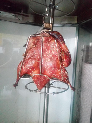 香港透骨香酥板鴨,又叫鹵鴨;這名字如同北京全聚德烤鴨早已被人們所熟悉,先煮后鹵,鹵完再烤,當(dāng)遍身醬黃、通體流油、香氣四溢時(shí),鮮嫩爽口、回味無窮的板鴨就做好了。一只透骨香酥板鴨,從宰殺到鹵制,環(huán)環(huán)相扣,工序繁雜,頗不簡(jiǎn)單,對(duì)于制鴨人,卻熟練得像變魔法,這在旁人看來,是不大不小的眼福。