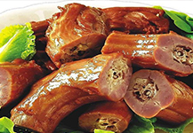 特點:武漢久久鴨以香、麻、辣為主,吃時不麻不辣,可一旦停下來則香辣味無窮。鴨脖講究涼吃,光啃肉,鴨脖肉為“活肉”層次分明,頗有嚼勁,肉啃完后,則吸吮骨節(jié)間的骨髓,“滋溜”一聲,令人頗有一種成就感。最后喜辣者可將骨頭嚼碎,細品慢吸,體驗“唇齒留香”而余味悠長。 賣點:武漢久久鴨在烈日炎炎的夏天,男士們佐以啤酒,三、五個朋友聚在一起,就著幾根鴨脖、鴨頭、鴨掌聊天調侃既開心,辣得又過癮。在寒冷的冬天,因天氣寒冷,而使人不想進餐,但如果啃著鴨脖、鴨頭、喝著白酒立刻胃口大開,同時也可驅寒保暖,辣味能打開人的毛孔,讓您大汗淋漓,邊啃邊出汗。而且它也是一種休閑食品,在有些城市的地鐵、公交車上經?吹,人們在車上食用,也是外出野餐、旅游、在家看電視的好伴侶。 妙處:武漢久久鴨采用祖?zhèn)髑旯欧郊右袁F(xiàn)代科技,它用三十多種中藥材及純天然香料,它雖然口味香辣、營養(yǎng)豐富,但脂肪含量較低,經常食用,能補充人體必須的蛋白質、維生素E、維生素B等多種營養(yǎng)成分。中草藥具有補脾益氣、潤肺止咳、清熱消腫,而且還能養(yǎng)顏滋補,是極好的美容佳品。 |