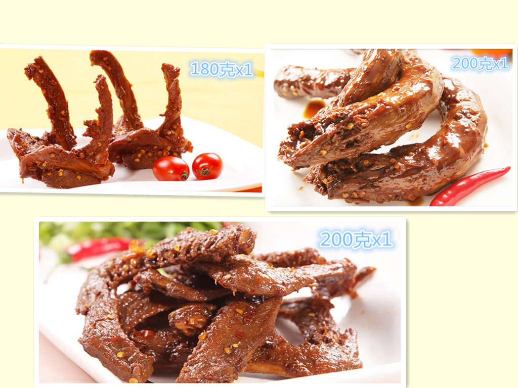 整雞、雞翅、雞爪 ◎豬系列: 豬蹄、豬耳、豬尾、豬腸 ◎素菜系列:豆干、海帶、蓮藕、蘿卜干、云豆、花生、龍蝦、螃血、魷魚、鵪鶉、整兔、兔頭等。 |